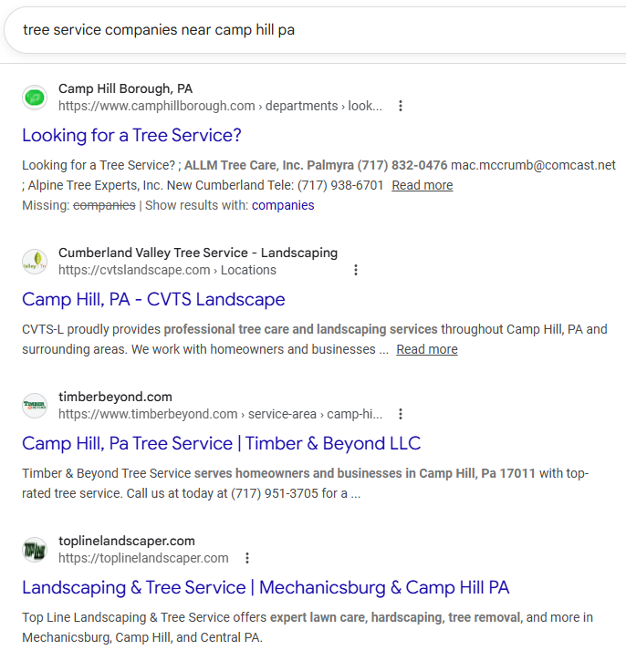 Our SEO services help tree service companies rank higher in Google search results.
